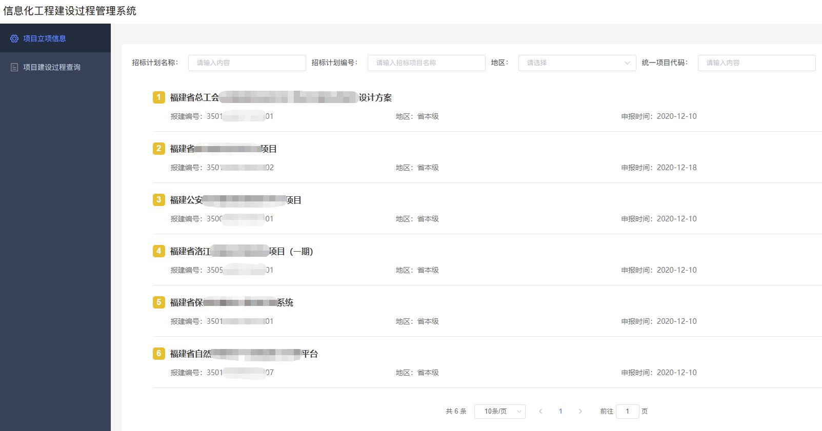 通过闽政通统一登录进入建设过程管理系统,监管部门人员可查阅工程建设情况,招标人可进行建设过程中的信息登记。