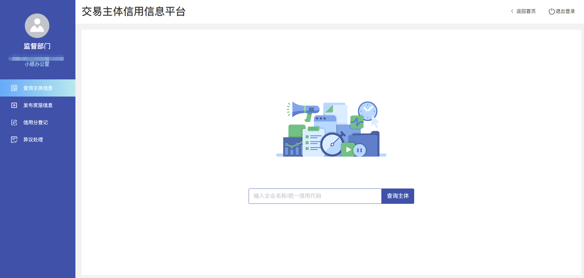 为行业部门对主体发布信用信息,奖惩信息平台。主体或社会大众可对发布的奖惩信息发起异议,相关部门进行查核并进行答复。主体可通过闽政通登录进行自身信息的填写与编辑。